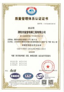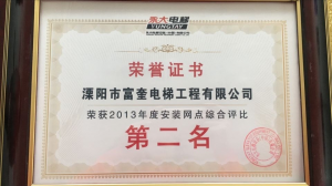 溧陽市富奎電梯工程有限公司 溧陽市富奎電梯工程有限公司是于二OO八年一月九日在原前身溧陽市電梯工程公司基礎(chǔ)上成立的,是專業(yè)從事電梯銷售安裝維修、保養(yǎng)的企業(yè)。是國家質(zhì)監(jiān)總局頒發(fā)的特種設(shè)備安裝、改造、維修A級安裝許可證單位。公司組織機構(gòu)實行總經(jīng)理負責制,公司下設(shè)管理部、銷售部、安裝維修部、質(zhì)安部、財務部,公司另外設(shè)十二個分公司:四川分公司、江蘇分公司、上海分公司、浙江分公司、湖南分公司、遼寧分公司、山東分...